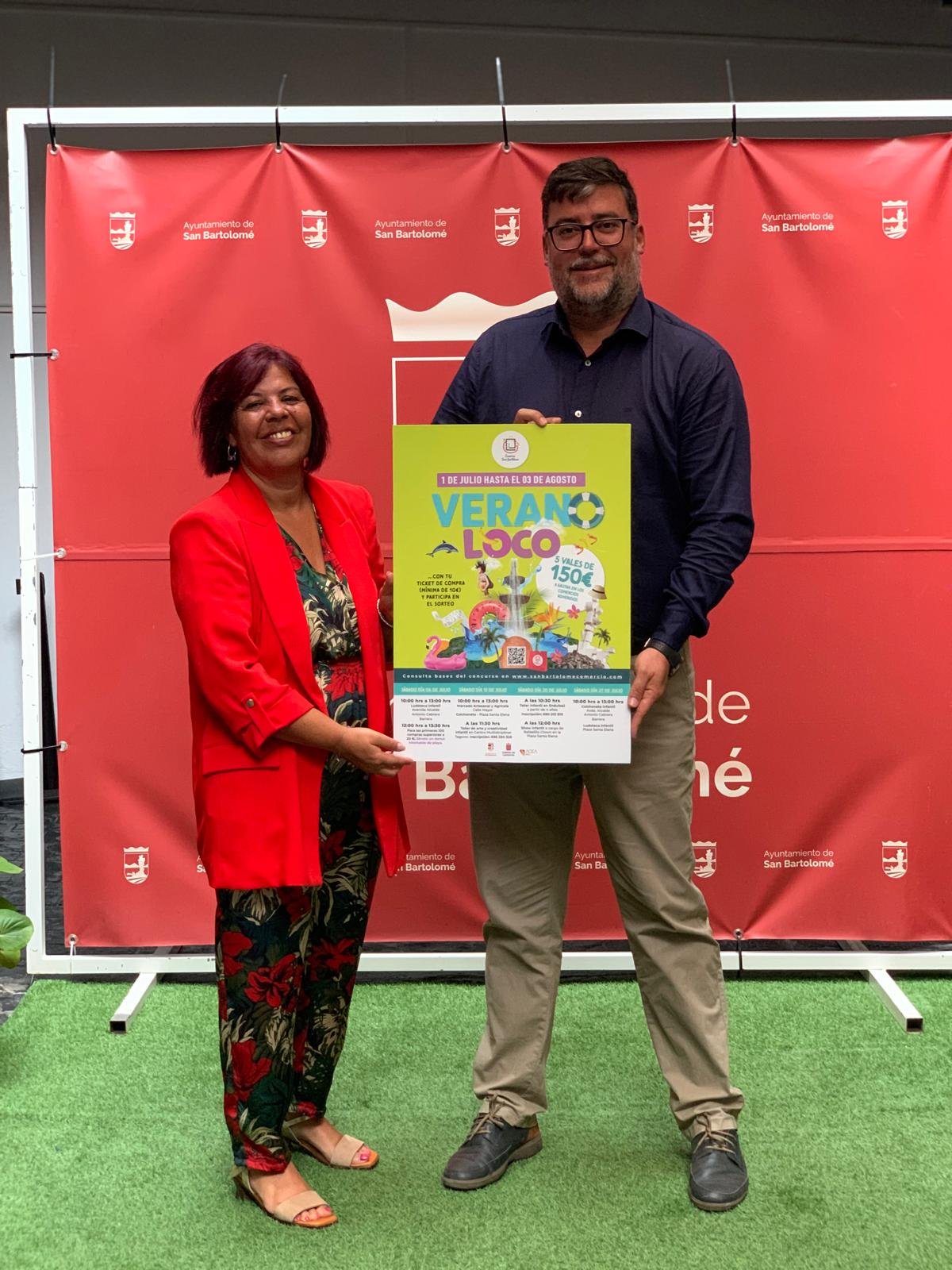 En la mañana de hoy martes 25 de junio, se ha presentado la campaña “Verano Loco 2024” en el patio del teatro municipal de San Bartolomé, de la mano del Alcalde Don Isidro Pérez y la concejal de comercio doña Alma Mª González. Doña Aroa Revelo, consejera de comercio del Cabildo de Lanzarote, excusó su presencia con problemas de agenda, pero declaró el total apoyo del Cabildo Insular a iniciativas municipales «Que impulsen el comercio local y que dinamicen todas las zonas comerciales de la Isla».