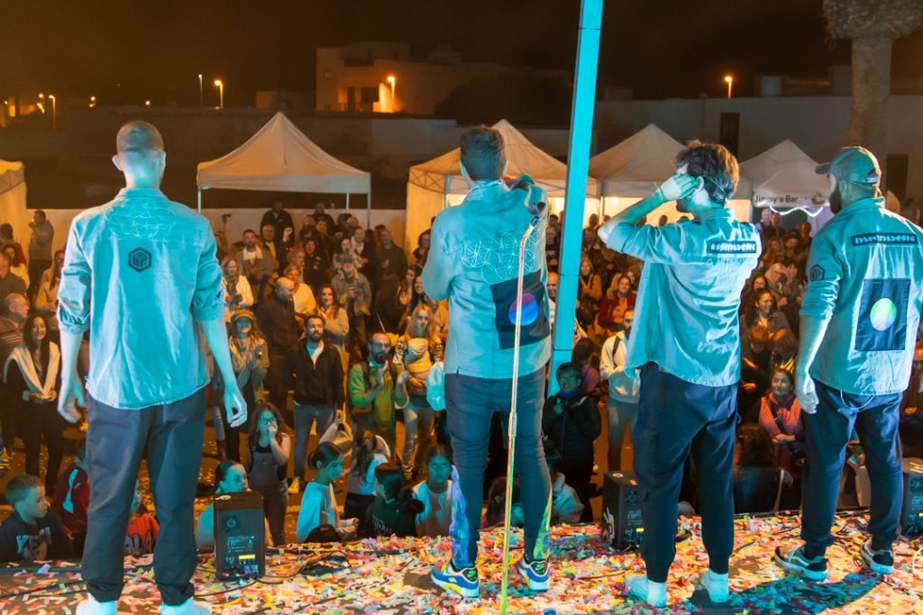 Con motivo de la lluvia, la apertura de la zona de tapas se retrasó, pero no pudo con el grupo “Sin cobertura” que animó a los asistentes y haciendo que el sol rápidamente apareciera, para dar paso a los dj ́s Maxi Ferrer y Angel Pérez.